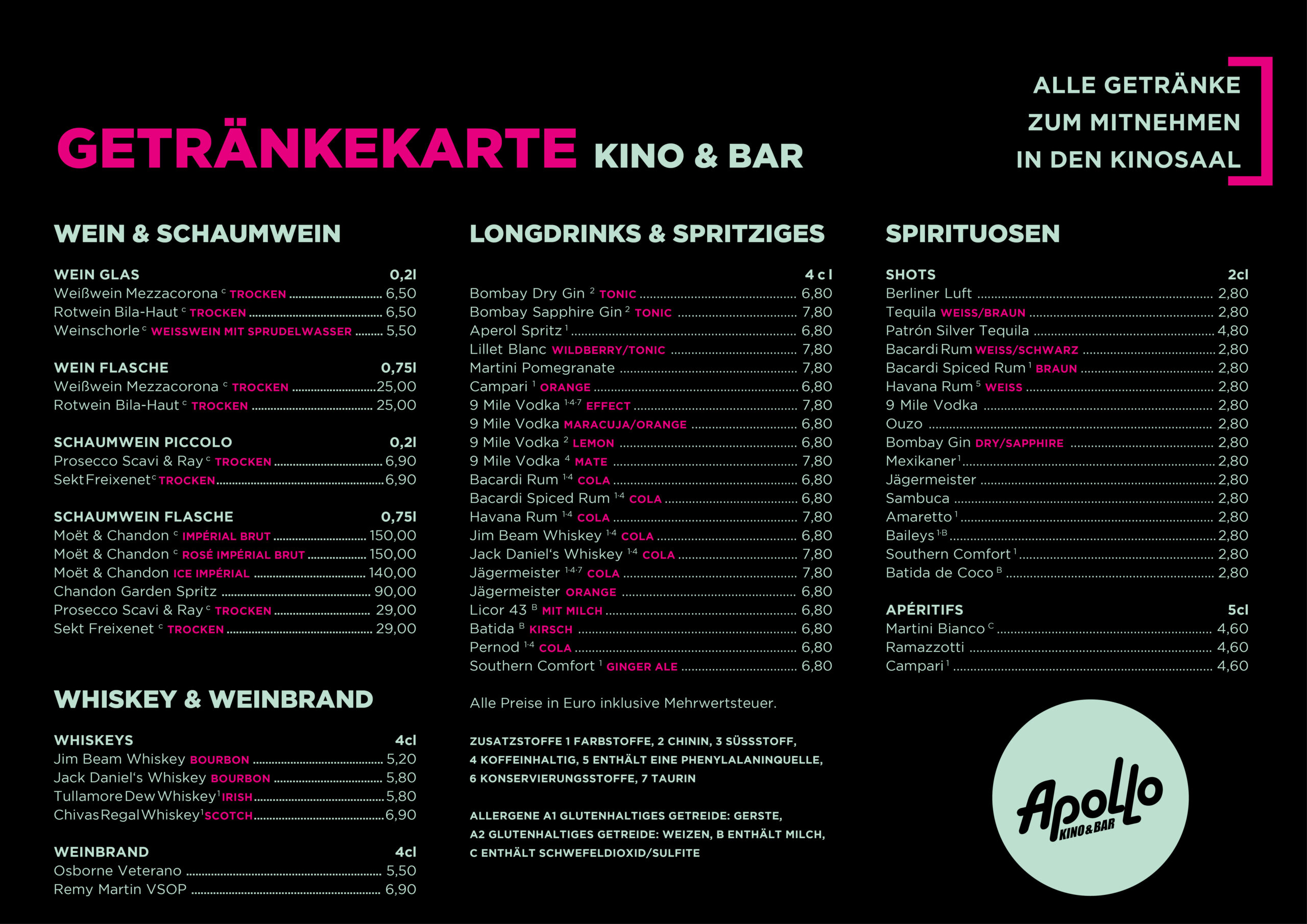 Willkommen in der einmaligen Kino-Gastronomie des Apollo Kino Aachen! Bei uns trifft gutes Arthouse Kino auf guten Geschmack: Duftendes Popcorn aus eigener Röstung, knusprige Nachos mit Dips, Snacks & Süßes und regionales Eis sorgen für den klassischen Kinomoment.