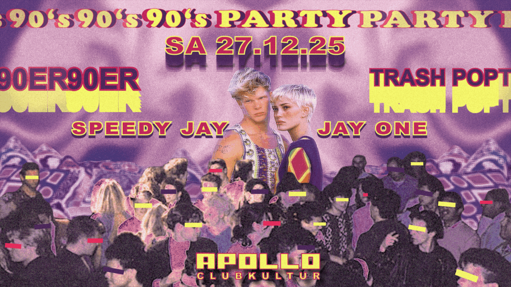 Eurodance, Boygroups, HipHop, Techno, One-Hit-Wonder… musikalisch sind die 90er unverwechselbar und bringen immer noch jede Tanzfläche zum Kochen! Seit über 10 Jahren lassen wir einmal im Monat Ace of Base, Biggie, die Backstreet Boys, Culture Beat, Fanta 4, Snap, Take That, Scooter, Will Smith, Michael Jackson und Co. wieder aufleben!