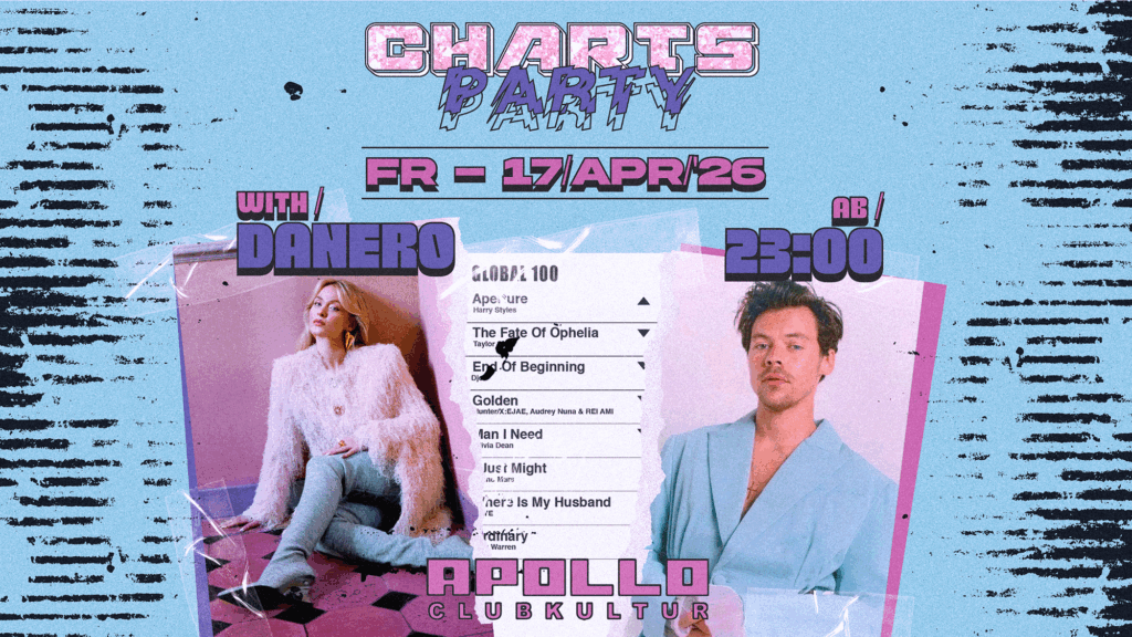 Spotify beherrscht unseren musikalischen Alltag – und genau dieses Gefühl bringt die Charts Party auf die Tanzfläche. Freut euch auf die besten und aktuellsten Hits unserer Zeit, von angesagten Chartbreakern bis zu Songs, die ihr gerade in Dauerschleife hört 🔥 Ob Guilty Pleasure, viraler TikTok-Hit oder absoluter Lieblingssong – wir liefern euch die Tracks, die ihr liebt, damit ihr gemeinsam mit euren Liebsten feiern, mitsingen und komplett eskalieren könnt 🕺💃